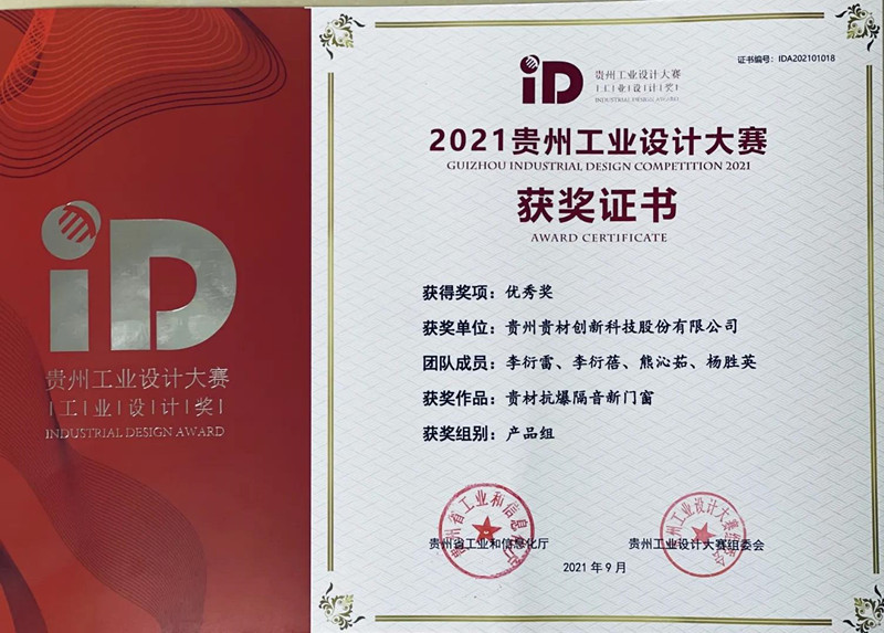 貴材“貴材抗暴隔音新門窗”從全球五百余家參賽企業(yè)中脫穎而出,既是對貴材科技自主創(chuàng)新能力和技術(shù)研發(fā)實力的認(rèn)可和肯定,也進一步推動公司朝著“專精特新”深耕,發(fā)揮省級工業(yè)設(shè)計中心的產(chǎn)品開發(fā)優(yōu)勢,在發(fā)展的道路上不斷尋求創(chuàng)新同時為把貴材科技打造成“貴州”的貴材和“全國”的貴材而不斷努力。