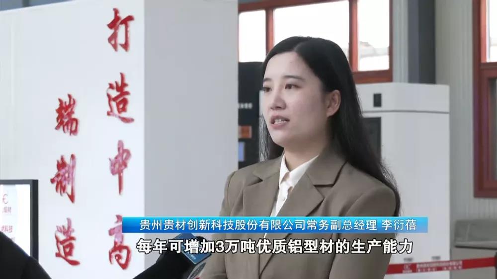 貴州貴材創(chuàng)新科技股份有限公司常務(wù)副總經(jīng)理 李衍蓓:生產(chǎn)部三期項(xiàng)目建成后,每年可增加3萬噸優(yōu)質(zhì)鋁型材的生產(chǎn)能力,年產(chǎn)值可增加7個(gè)億。同時(shí)我們將推進(jìn)能源監(jiān)控體系、自動(dòng)化生產(chǎn)、數(shù)字化質(zhì)檢系統(tǒng)的建設(shè)。