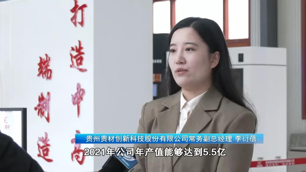貴州貴材創(chuàng)新科技股份有限公司常務(wù)副總經(jīng)理 李衍蓓:2021年公司產(chǎn)值能夠達(dá)到5.5億,比去年同比增長(zhǎng)36%,車間生產(chǎn)線全年保持90%以上的生產(chǎn)效率。