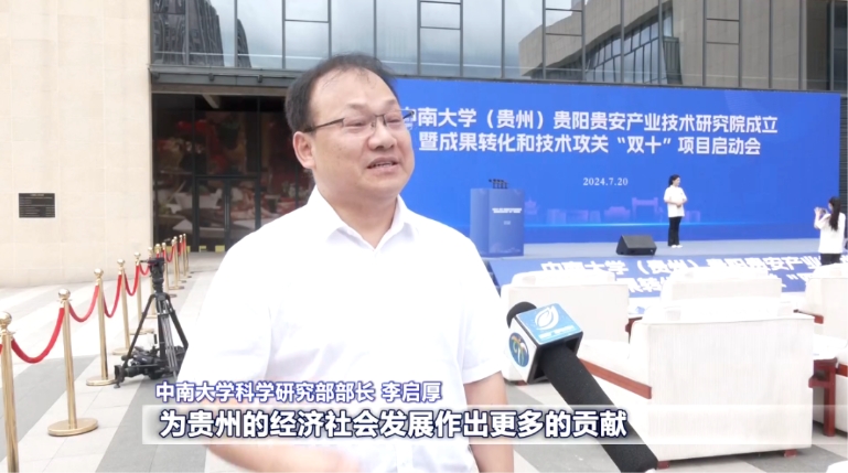 中南大學(xué)科學(xué)研究部部長 李啟厚:這個研究院是中南大學(xué)服務(wù)貴州省經(jīng)濟(jì)事業(yè)和產(chǎn)業(yè)發(fā)展的一個重大窗口,聚集中南大學(xué)的學(xué)科優(yōu)勢、學(xué)科人才,定向地、精準(zhǔn)地開展科技成果轉(zhuǎn)化、科技攻關(guān)相關(guān)的服務(wù),為貴州的經(jīng)濟(jì)社會發(fā)展作出更多的貢獻(xiàn)。