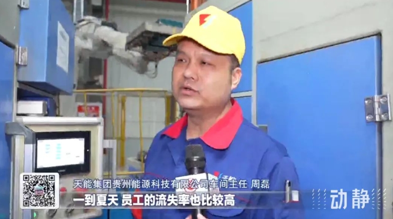 天能集團(tuán)貴州能源科技有限公司車間主任周磊介紹,以前純手工,爐溫的溫度最高溫是510℃,神經(jīng)高度緊張,一到夏天,員工的流失率比較高。