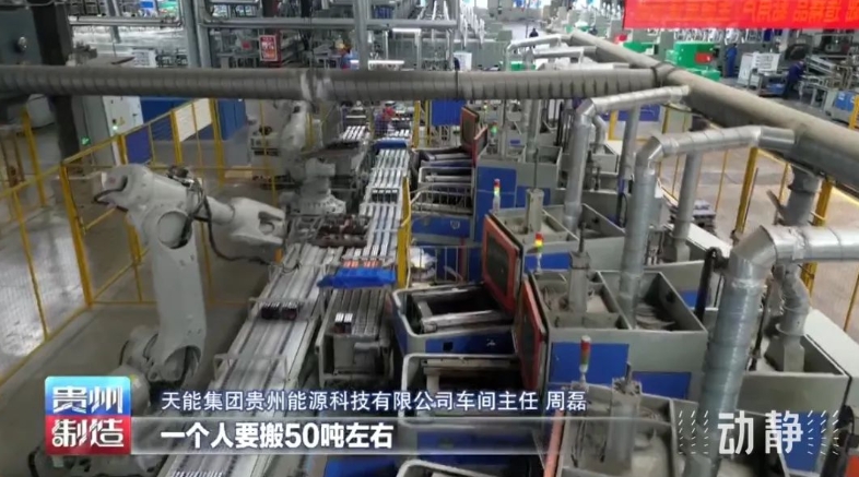 天能集團(tuán)貴州能源科技有限公司車間主任周磊表示,以前做1萬只產(chǎn)能,一個人要搬50噸左右,現(xiàn)在只需要電動液壓車把電池產(chǎn)品做好之后轉(zhuǎn)運(yùn)出來。