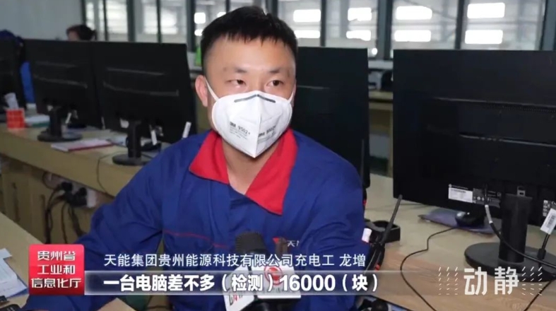 天能集團(tuán)貴州能源科技有限公司充電工龍?jiān)鼋榻B,手操控電腦過后,能夠監(jiān)測到每一塊電池,一臺電腦差不多檢測16000塊。