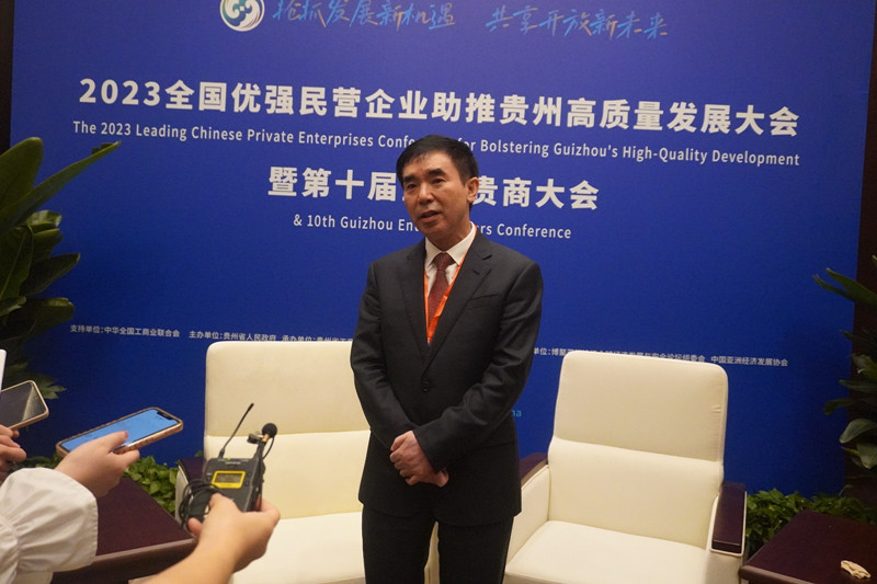 貴商大會(huì)上,趙澤明接受記者采訪。