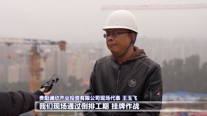 貴陽瀾欣產(chǎn)業(yè)投資有限公司現(xiàn)場(chǎng)代表 王玉飛:我們現(xiàn)場(chǎng)通過倒排工期、掛牌作戰(zhàn),所有的參建單位齊心協(xié)力,目前項(xiàng)目進(jìn)展還是比較順利的,每天的工人在300人左右,截至今年年底,我們要完成6.5萬平方米的項(xiàng)目建設(shè)。