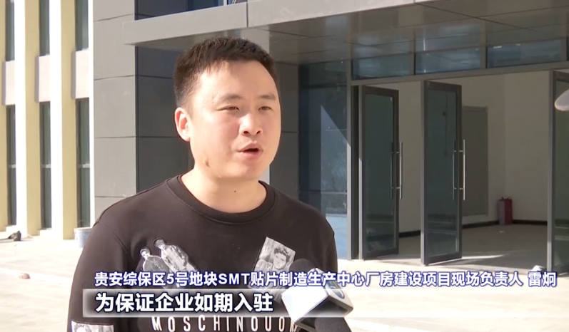 貴安綜保區(qū)5號(hào)地塊SMT貼片制造生產(chǎn)中心廠房建設(shè)現(xiàn)場(chǎng)負(fù)責(zé)人 雷炯:為確保企業(yè)如期入住,我們?cè)诖_保安全的情況下保證質(zhì)量,先后組織了300余名工人參與了兩棟廠房的項(xiàng)目建設(shè)任務(wù),目前我們計(jì)劃明年1月份能夠驗(yàn)收完成,達(dá)到企業(yè)入駐使用條件。